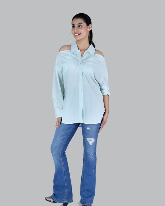 Dark Green Satin Shirt for Women | Elegant Long Sleeve Blouse