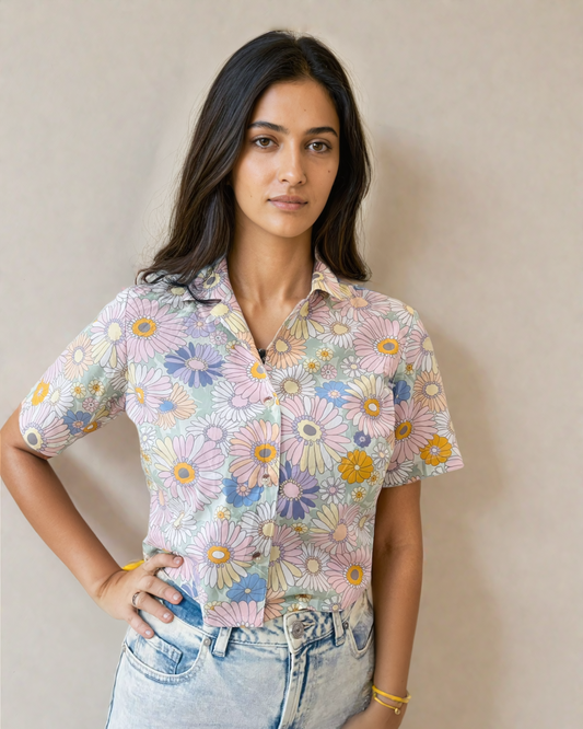 Trendy Printed Cotton Crop Top – Everyday Casual Style
