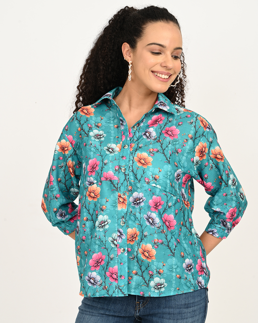 The Classy Aqua Blue & Maroon Floral Digital Print Cotton Top for Women | The Classy Clothing (Copy)