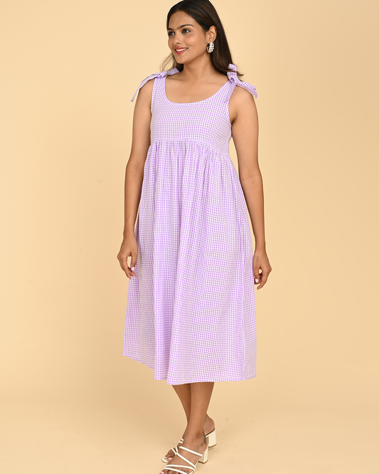 100% Cotton Check Midi Dress for Women in India – Casual Wear