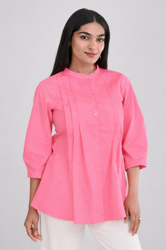 Office Wear Pintuck Top for Women | Cotton Workwear India (Pink)