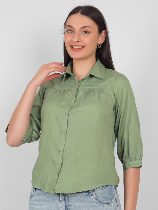 Olive Green Cotton Shirt for Women – Office Wear Cotton Top